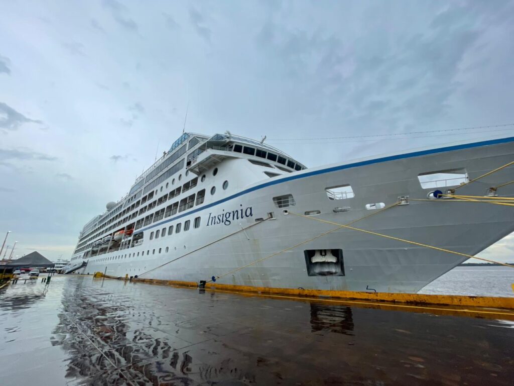 About 180 meters long, the MS Insignia carries out an international itinerary that began in San Juan (Porto Rico), passed through Belém (PA) and goes to Parintins (AM), strengthening the Amazonian cruise route and expanding the presence of the region in the main international tourist circuits.